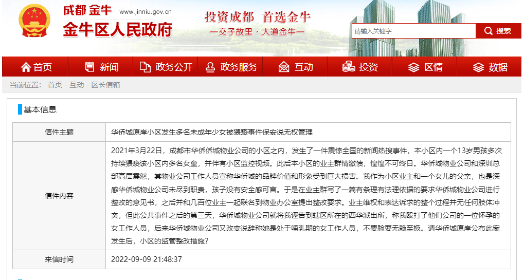 閑言少敘,再說一事兒,也同樣是我深度參與的熱搜事件。2021年3月22日,成都市華僑僑城物業(yè)公司的小區(qū)之內(nèi),發(fā)生了一件震驚全國的新聞熱搜事件,本小區(qū)內(nèi)一個13歲男孩多次持續(xù)猥褻該小區(qū)內(nèi)多名女童,并伴有小區(qū)監(jiān)控視頻。此后本小區(qū)的業(yè)主群情激憤,惶惶不可終日。華僑城物業(yè)公司和深圳總部高層震怒,其物業(yè)公司工作人員宣稱華僑城的品牌價值和形象受到巨大損害。我作為小區(qū)業(yè)主和一個女兒的父親,也是深感華僑城物業(yè)公司未盡到職責,孩子沒有安全感可言。于是在業(yè)主群寫了一篇有條理有法理依據(jù)的要求華僑城物業(yè)公司進行整改的意見書,之后并和幾百位業(yè)主一起聯(lián)名到物業(yè)辦公室提出整改要求。業(yè)主維權和表達訴求的整個過程并無任何肢體沖突,但此公共事件之后的第三天,華僑城物業(yè)公司就將我誣告到轄區(qū)所在的西華派出所,稱我毆打了他們公司的一位懷孕的女工作人員,后來華僑城物業(yè)公司又改變說辭稱她是處于哺乳期的女工作人員,不要臉耍無賴至極。幸好當時在場的幾百個業(yè)主全程見識了堂堂央企華僑城物業(yè)女性工作人員假摔倒地后故意不起的名場面,我們業(yè)主集體幫她叫救護車,并愿意集體主動幫她湊錢承擔醫(yī)藥費的請求,也被其拒絕了。也幸好后來小區(qū)里面的幾位正直勇敢的女性母親業(yè)主陪同我去了西華派出所為我作證,之后該猥褻女童的案件不了了之,嫌疑人平安無事的回到家里。