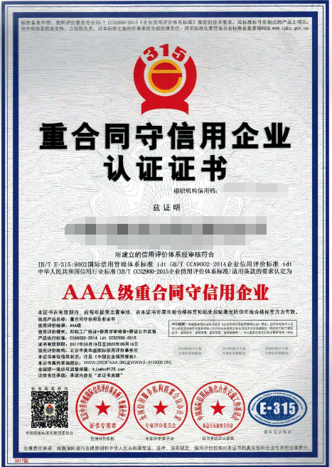 重合同守信用企业认证